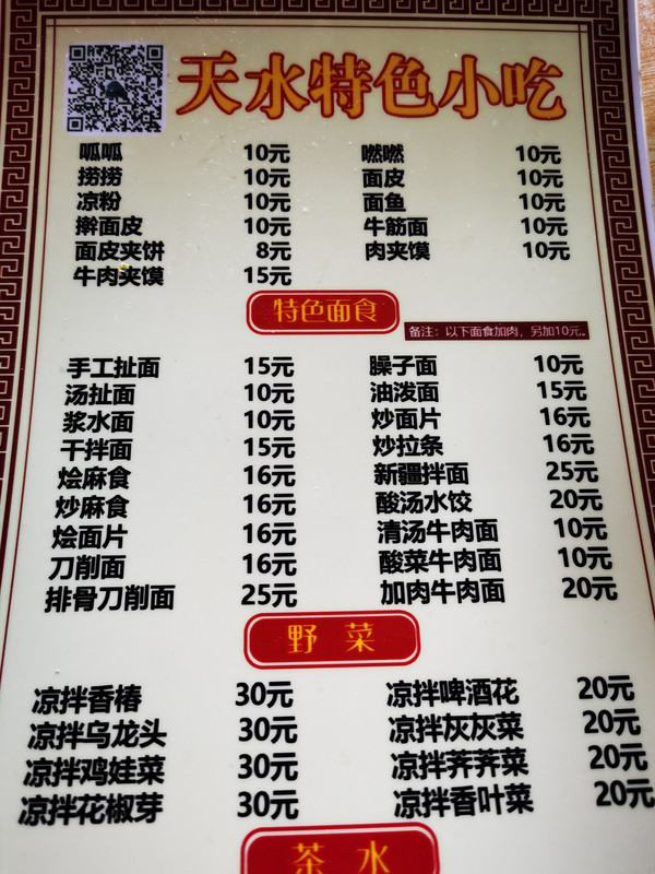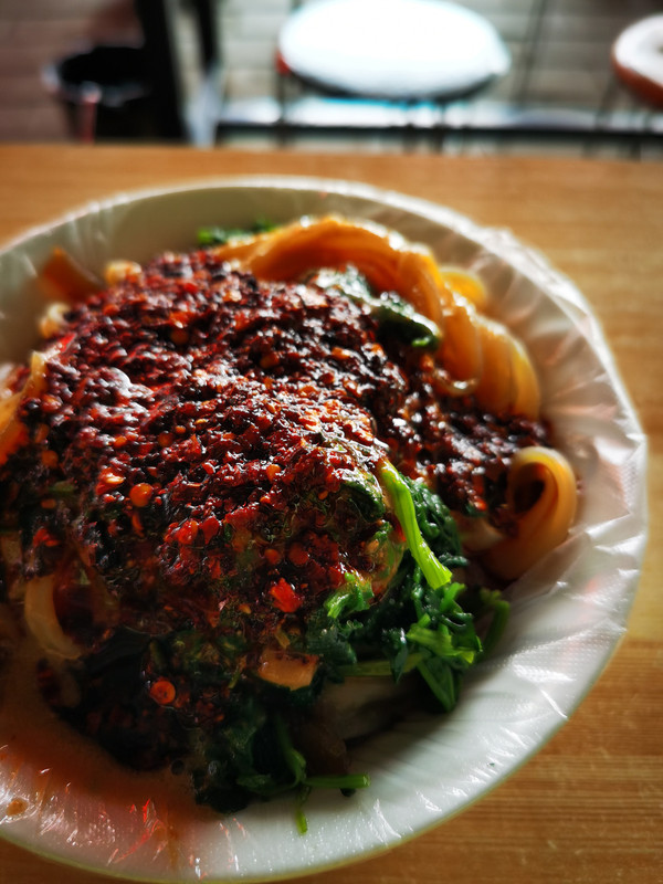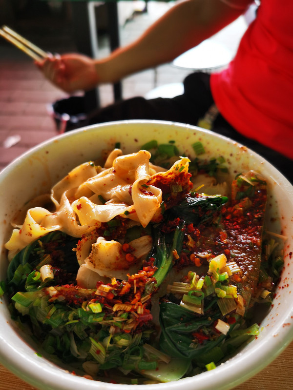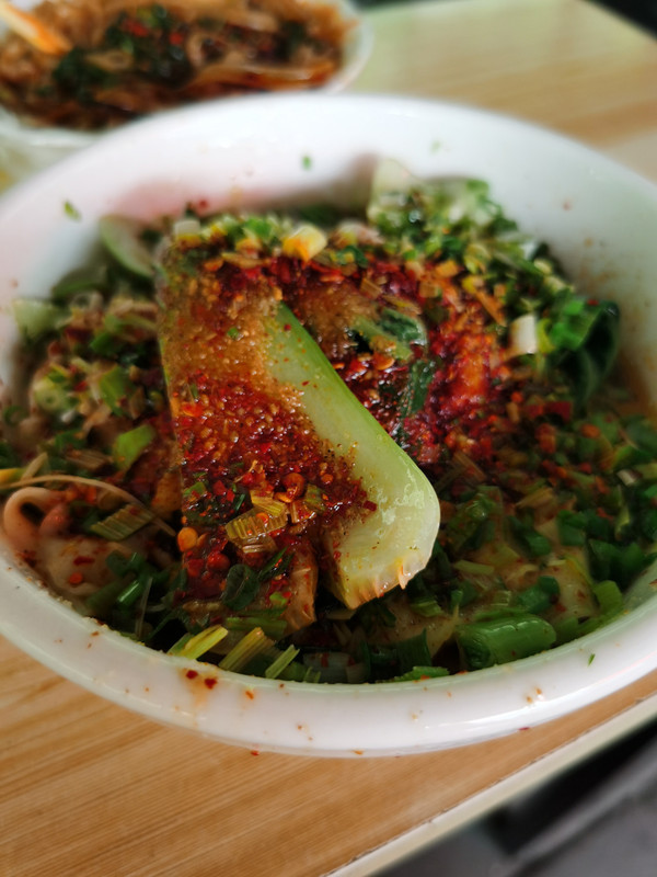 大西北的面食绝对是优秀,各种碳水变换着形式做出各种花样。比如呱呱,捞捞,嘫嘫。。。。。就是特色中的特色,均是由荞麦淀粉、豆类淀粉、土豆淀粉等杂粮粉制成。可选择三拼的形式,满满一碗杂粮粉,配上当地的野菜,再浇上香喷喷的油辣子。。。。。这是我在在景区吃过的最有特色也是最美味的小吃了。