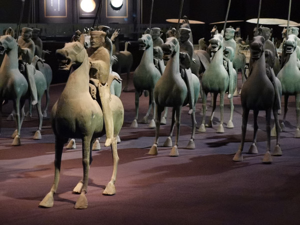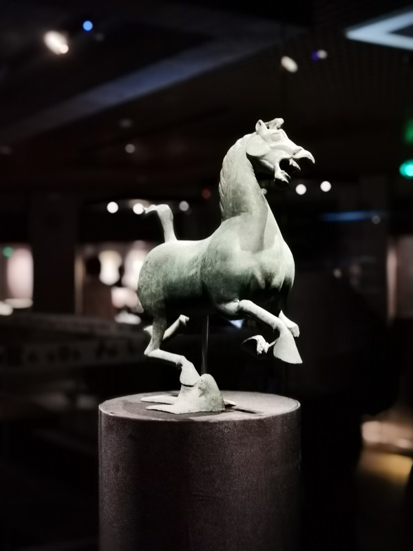 租了语音导游后开始了参观。虽然我们对于文物了解不多,但依然被各种精美的古代器物、佛像彩绘等吸引。博物馆主要分为丝绸之路文明、佛教艺术以及彩陶展三大精华部分。其中有镇馆之宝——马踏飞燕铜奔马,也是中国旅游的标志,个头不大,但无论从马的神态还是骨骼肌肉,栩栩如生,活灵活现。