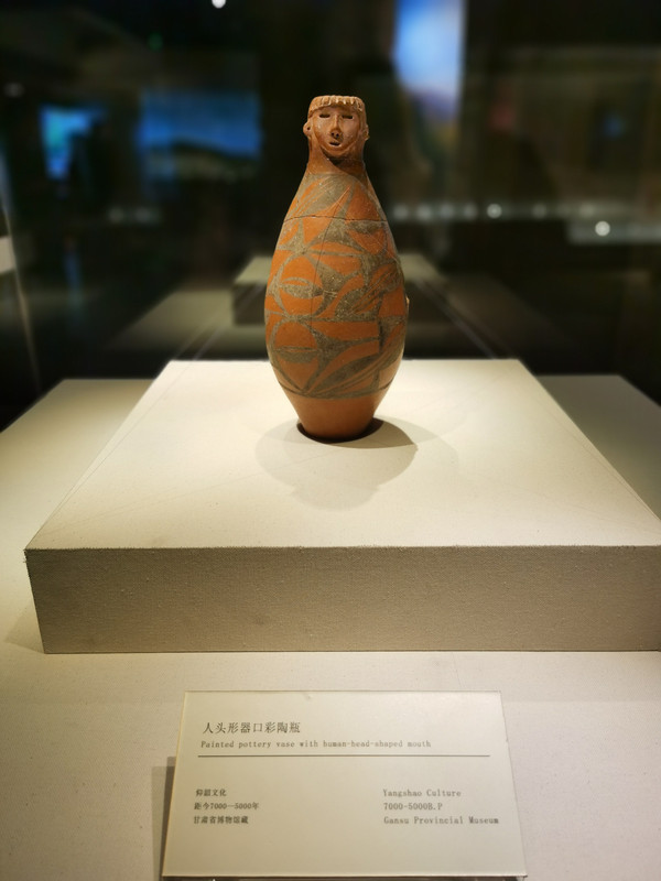 人头形器口彩陶瓶也是镇馆之宝之一,放在参观伊始最醒目的位置。