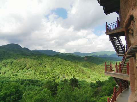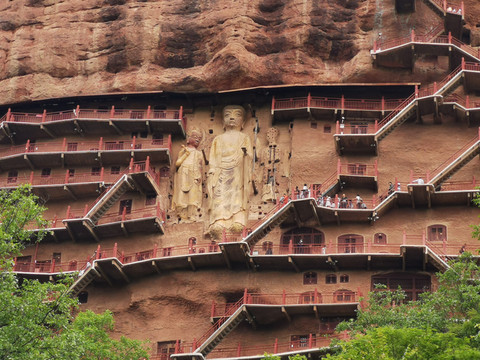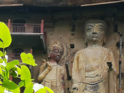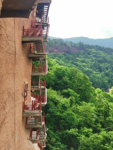 麦积山景区有几个亮点:第一石窟集中在不大的石山上,却因为沿山势而修的千回百转的栈道,无限扩大了可游可观的范围,也平添了登高远望,凭窗细看的风景。第二虽然不少石窟被铁丝网、铁窗、铁门保护,但所见之景也足以震撼人心,而且拍照随心随性。第三麦积山下植被覆盖度高。绿色柔和了石窟的刚硬,也丰富了石窟的颜色。如果9点开园就进景区,12点之前出景区,可以免受太阳的曝晒。因为东崖你是背着阳光看石窟,西崖上午晒不到太阳。只是栈道楼梯颇陡,恐高者慎入。