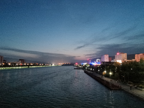 我们从长沙乘高铁,于当天18:00抵达天水高铁站,搭的到渭河边的民宿。民宿地理位置优越,逛街、吃饭、出行都方便,就是房间太小,所以不推荐。晚餐就在附近步行街吃香锅——唉,吃过了长沙的美食,这香锅味道太一般。还不如直接吃肉夹馍。片片香肉夹馍(麦积区店)就在民宿附近,味道尚可,稍微咸了点。然后沿着火车站前的大道直走,来到渭河边。