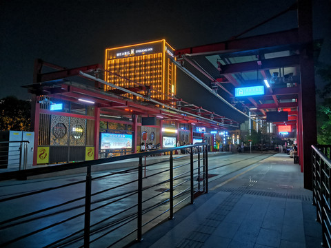 这里有个跨河桥。特色在于,桥不仅是步行桥,桥边还有城轨首发站。也正是这个桥头中国风的小站,和暮色中小站的温文静雅,让我们玩了回乘车乌龙。