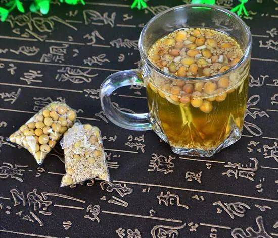 豆子茶也是诸多游客喜爱的茶之一。把干黄豆放入冷水中浸泡。待黄豆充分泡胀后,按1斤膨胀豆、1斤白糖的比例放进锅中,先用武火煮开,后用文火煮烂熬干,晾后待用。