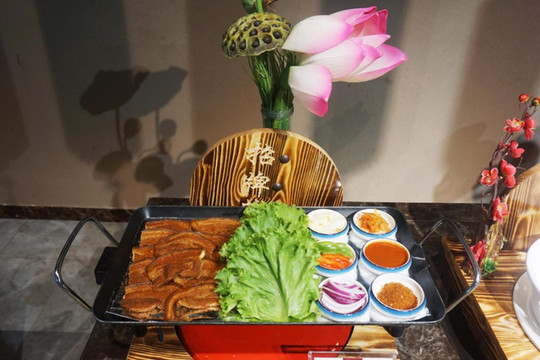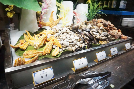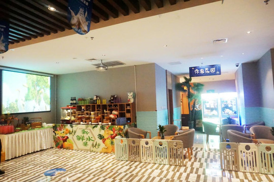 晚上六点多到的,到房间的后洗刷了下准备找点吃的。到楼下问了下大副,给我们首推就是自助餐,说是微山县最好的自助餐,价格便宜,品种丰富。看她自信满满的样子我就带着家人去试试,价格确实不贵,均价59元。带了餐厅才发现,之前自己就想错了,微山县本来就是个小县城,人口也不多,真没想到竟然会有这么好的自助餐,简直可以用高档豪华来形容了,进去之后就感觉里面的空间非常大,而且错落有致,不拥挤,非常舒适。菜品也很丰富,估计要有200多种(推荐下羊肉汤特别好喝,我自己就喝了4碗,口味特别棒!)。儿子也别别喜欢,吃饱了之后到处乱跑,听他说和别的小孩交了朋友,还一起去了二楼区域的儿童乐园一起玩耍,这家伙玩的真是不亦乐乎啊。