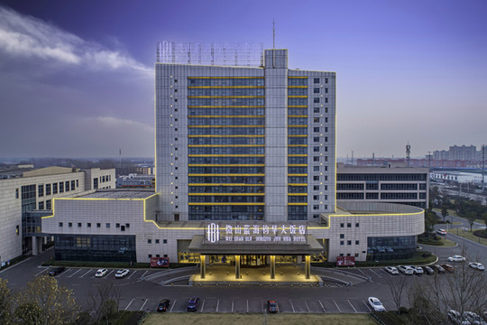 这张图片给我最大的印象就是整个酒店像一艘杨帆的巨舰,和微山湖的意境特别搭。而且最最最最让我高兴的是竟然有这么大的停车场,前后左右,特别是后面全是停车位,据说有将近300多个车位(办理入住时前台的美女告知的)。