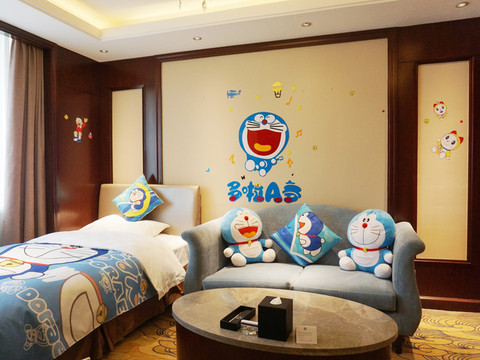 因为带着爱人和小孩,订了间亲子房(据说是专为家庭旅游布置的房间),而且还是我儿子最喜欢的叮当猫风格,这下不订也不行了,可把小家伙高兴坏了。