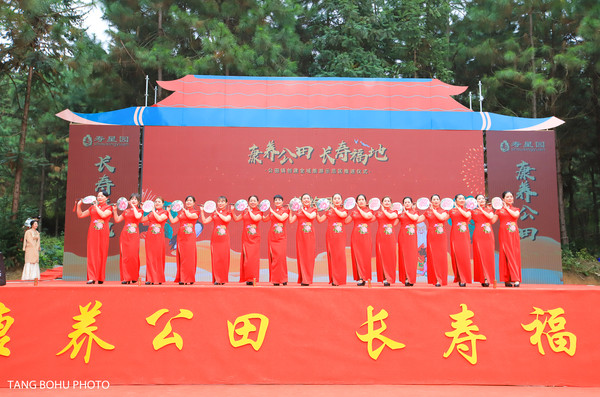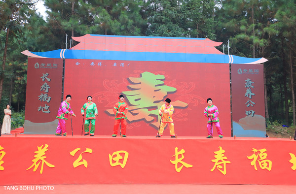 现场来了好多村里的长寿老人,他们有的90多岁,看不出有那么多岁,反而看上去比较年轻,精神抖擞,满脸洋溢着喜气,演员们为寿星园的开园呈现出精彩的演出。康养公田,长寿福地。