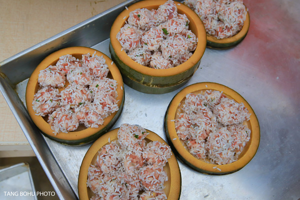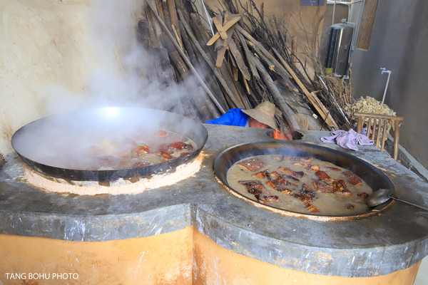 肉丸子先裹上一层米,用竹筒装盘再蒸,味道鲜美。这里煮饭都是用大锅柴火饭煮,煮起来的味道特别的香。要是你到这里旅游的话千万别错过这里的美食了。