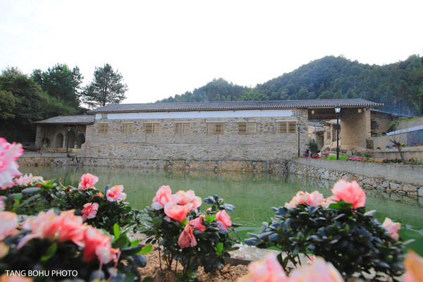寿星园的主人,是一对高寿夫妻。宋代翰林学士陈一发和妻子傅秀朝,101年的婚姻中,有42年美好时光,停留在这里。更可贵的是有101年的婚姻,百年恩爱的老人,把自己憧憬过、享受过、欢乐过的寿星园,留给了社会。在入口处有一水塘,池里的水清澈,池塘边的三角梅花开正艳。当我走进这里的时候,眼前出现的是一片大山,周边被绿树包围着。我想在古代,这么山的地方怎么还能住人呢,根据书上的记载以前发言及管理方圆几公里就只有这一户人家。