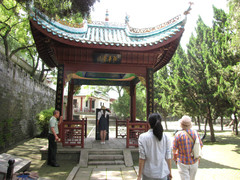 今天看到的寿星园是经过重新整修一新的园区,呈现在我面前的三拱门,叫做朝门。朝门,与皇上上朝的朝,是同一个字,但这个朝门,与上朝无关。通俗地讲,朝门,相当于现在的院子或围墙门。这座门楼,是清朝雍正四年,朝廷追封寿星时,拔专款修建。分左、中、右三拱。这一布局,与中华民族人文始祖、伏羲文化一脉相承。中门,只有重大活动时才开启,平时开两侧之门。大家,可以选择男左女右的方式,也可以不受拘束地随意进。