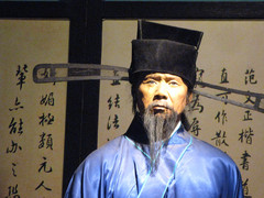 上方大匾,按从右至左的习惯去读,是“天下归心”。这个天字,是由“青”和“气”组成,是汉字中的会意字。这是明朝嘉靖十九年时,一个叫张居正的“神童”所书,当时才16岁,他后来官至万历首辅,是今湖北江陵人。