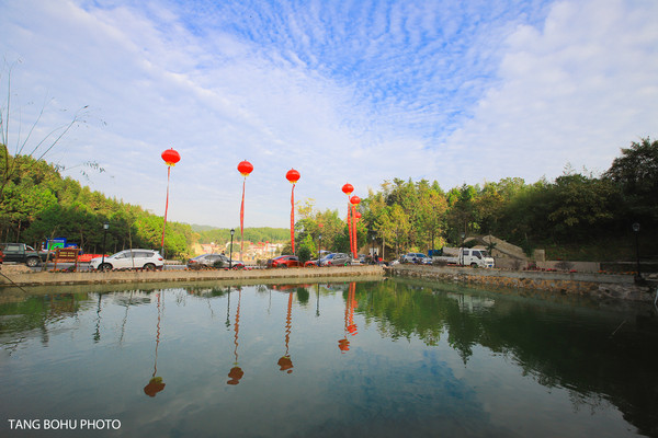 蓝天白云下岳阳寿星园水池旁停满了车,众多游客前来一看这么长寿和寿星曾经居住的地方到底和普通的居住有什么不同,是这里的空气好,还是这里的水好呢。