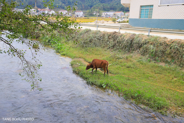 弯弯的小河,河水非常清澈,可以看见河底的鹅卵石。一阵微风吹过,镜子般的水面泛起层层波澜,偶然会有几条小鱼快速地游过,小溪边的牛正在吃着草。小朋友和老人们正坐在树下说说笑笑。乡村的景色真令人难忘。乡村的风景真是一个美丽的大花园,到处都充满了生机勃勃!