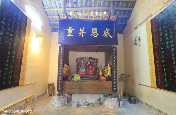 走里古居里呈现在眼前的是“威恩并重”四个大字,堂屋中央的神台位置,中间两尊主雕像,是寿星伉俪陈一发和傅秀朝。站立在两侧,护佑寿星的,是他们的9个儿子。傅秀朝老人家左胸平坦,只有右胸一个乳房!这位老奶奶,一胎孕三个男婴,三胎生九个孩子,都是凭独乳哺养,是誉满天下的独奶夫人。在这里你会感受到母亲的伟大,生育了九个孩子并培养成人,真的太伟大了。
