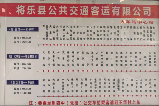 从将乐火车站出站后,向站前广场方向步行大约200米到达公交站点,乘坐2路(6:50分-22:10分)、3路(6:50分-20:30分)、8路(6:50分-18:30分)公交车到汽车站下,票价1元,车程约10分钟。从汽车站换乘10路公交车到“玉华洞停车场站”下车即可到达,票价2元,车程约20分钟。