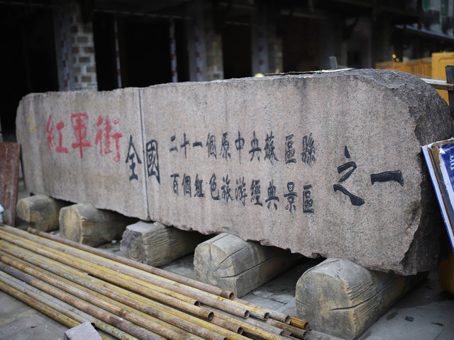 过了马路来到红军街,貌似是要整成步行街的样子,但不巧正在装修。往前走有个山,是一个烈士公园。旁边有一个红军的展馆。