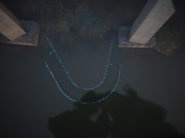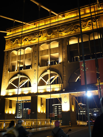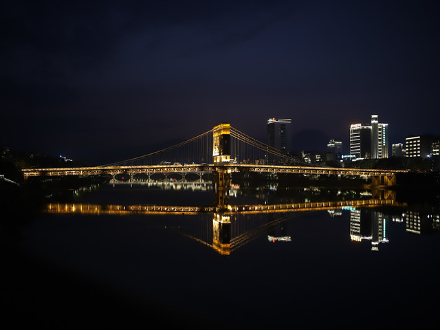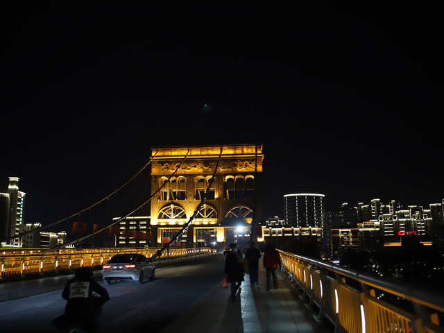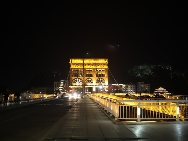 步行道的尽头是索桥,挺宏伟的,夜景担当。