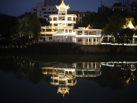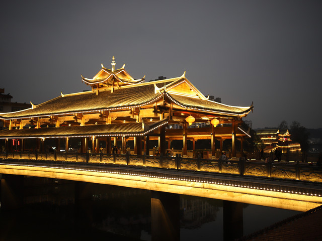 走出来,回到古城。天色已晚,桥上的灯亮了,夜景也还不错。