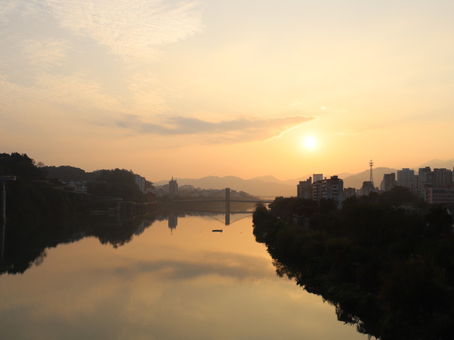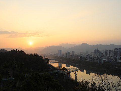 从东大桥走过去就可以到七峰叠翠景区,爬很多楼梯到凝翠阁。凝翠阁底层是新的沙县博物馆,但是没有开门。赶时间爬上来却没有开门,也挺遗憾。不过还是在顶上看到了落日,风景不错。