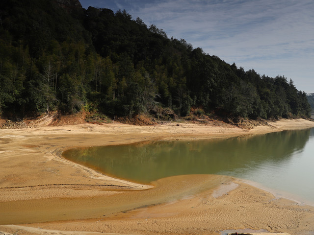 在泰宁汽车站可以坐大巴前往大金湖,在自助购票机或者现场都能买票。7点半开始,每一小时有一班车,过去也只要二十分钟左右的车程。我们坐了8点半的车,到景区游船码头也不到9点。司机会让大家记下电话,等到船要回程的时候可以打电话给司机回来接。走两步去游客中心买票等着排队上船。一共有两条路线可以选择,A路线3.5小时,163元;B路线是深度游,要6小时,两百多块。我们买了A路线。本以为可以赶得及9点的船,但是9点不开,只能等9点半的。稍作休整,去前面的打卡点拍几张游客照。