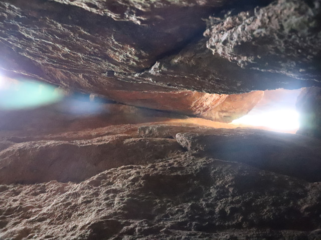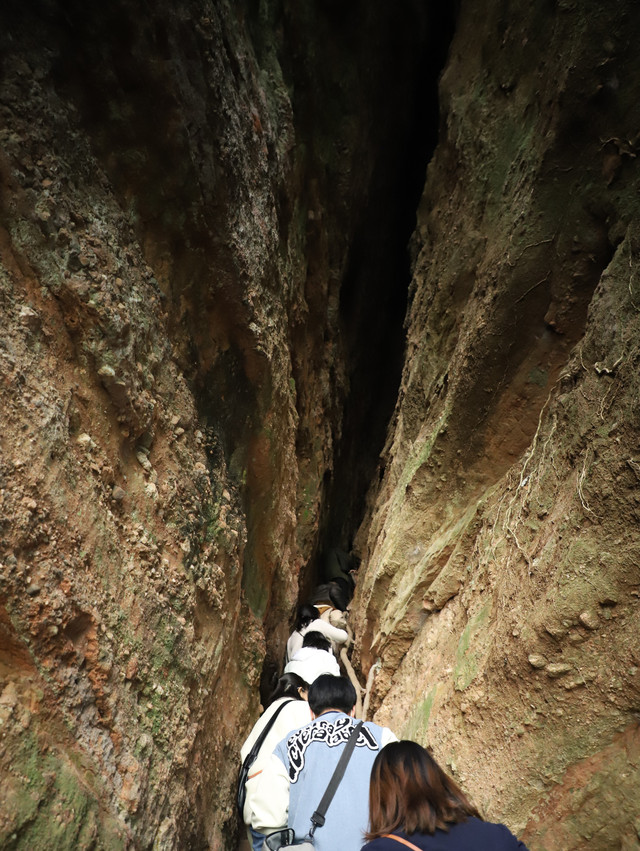 第二个陆上景点是岩隙天梯,这个景点要经过一线斜天,会建议年纪大的游客走另一段栈道。很多景点都会有一线天,这个一线天是我走过最长的一线天了,狭小的细缝,到最后要手脚并用,人不多时可以走走歇下,一口气走完实在是太喘了。