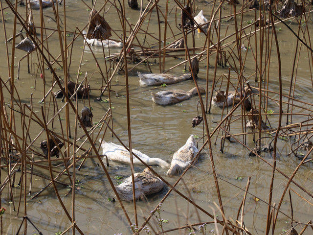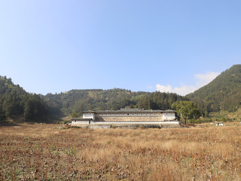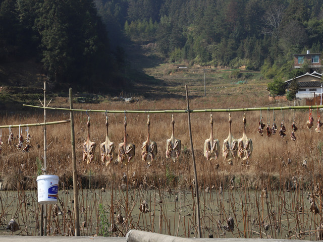 永安汽车站在闹市区,车站的设施也比较好。九点多上车,两个小时左右到安贞堡。一进去是旅游集散中心,票价30元,在网上买更便宜,可以在网上买了再去现场换票。集散中心走去安贞堡大概还有六七百米的距离。路上可以看到万金厝。荷塘这个季节的荷花已经枯萎,荷塘有鸭在徜徉,岸上晾着风干的板鸭,一幅很恬然的乡村美景。