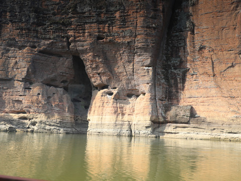 大金湖是随着船游览,路上有导游跟着讲解。船会停靠三个陆上景点,会给一段时间上岸游览,需要在规定的时间内回船上。时间一般是计算得比较刚好,略微有些赶。在船上就坐在最先选定的位置,上岸时可以把不贵重的物品放船上。游船上可以参观到一些丹霞地貌,水上的丹霞别有一番风景,如果能坐在靠窗的位置可以多拍些景色。