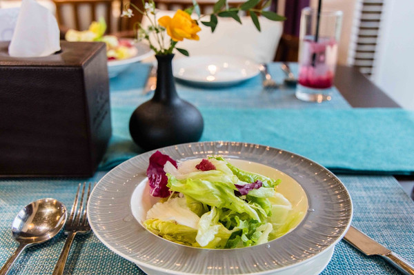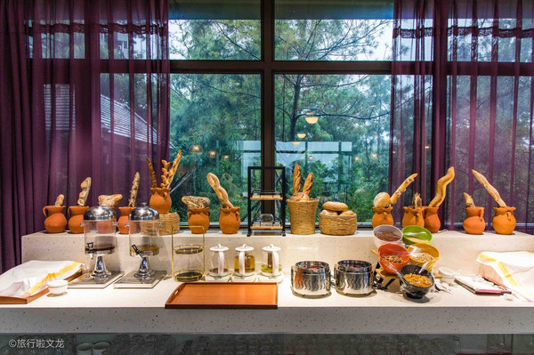 我们的晚饭是在牧云台吃的西餐,这个地方相当的有格调,处于最高处,而且四面都是玻璃,外面是无边泳池,还可以很好的观赏外面的美景。里面的装修更是精致无比。