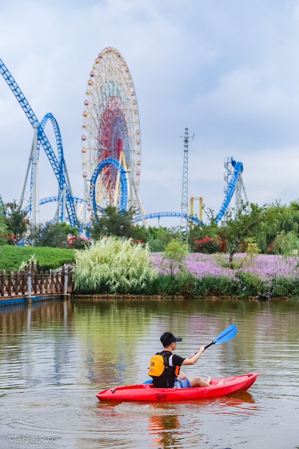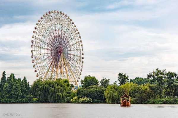 我悠哉的划着,欣赏着周围的美景。柳条开的如此的繁茂,旁边的花也竞相的开放着,绿化做的不错。最吸引眼球的还是高大的摩天轮。白天的摩天轮虽然没有晚上更能衬托气氛,是因为没有灯光的点缀,但是这个摩天轮的设计还是相当的有视觉的冲击。给我留了深刻的印象,这样泛舟而行的机会并不多,我很珍惜。