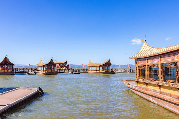 船的造型贴近古滇国“长脊短檐”的建筑风格,很符合 云南 特有的民族风情和古滇国所拥有神秘文化的内涵。游客们可游行的船叫滇海渔舟,而且还有编号,做工也很精细,就这样缓缓的向前移动着,很是惬意,微风徐徐的吹过脸颊,十分的凉爽。在江上还遇到了清理水面上的污渍的人,我们还去打了招呼,一口地道的 云南 话与我们交流着,虽说有些许的不懂,但是可大概知道,这地方的水质很不错,是他们细心的呵护。