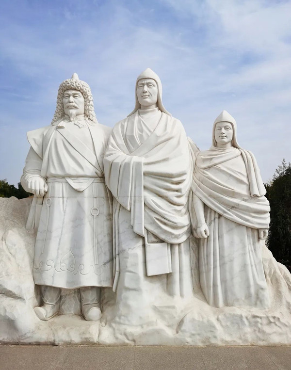 下图为萨班雕塑。萨班是咱传佛教萨迦派的第四代宗教领袖,著名的佛学家、文学家和政治家,凉州会谈后,在白塔寺讲经弘法5年,后圆寂于此。