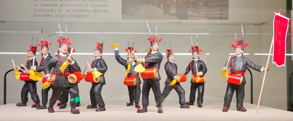五凉文化是如今河西地区许多非物质文化遗产的源头,攻鼓舞、狮子舞继承了西凉乐舞的元素和特点。下图为凉州攻鼓子,是民间社火的一种鼓舞艺术,历史悠久,风格独特,千年相延,承续不衰。其既有威武雄壮、粗犷豪放的阳刚之气,又有婉转娴雅、翩然恬淡的阴柔之美,具有典型的西凉乐舞遗风,深为当地人所喜闻乐见。