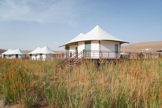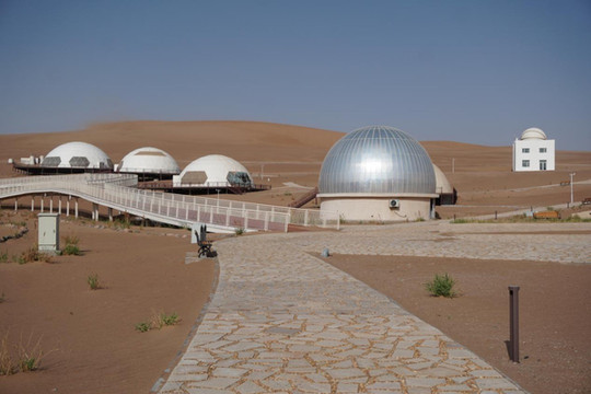 白天的“摘星小镇”,像是一颗颗珍珠一班散落在苏武沙漠,这里不仅有独立的“摘星小屋”,还有“天文科普馆”。无论是休闲度假享受大漠的美丽风光,还是走进“天空的幻想”,学习天文知识,抑或是透过穹顶天幕电影,亲自感受浩瀚宇宙,都是不错的选择。