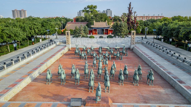 雷台汉墓,约建于东汉晚期,因出土中国旅游标志“马踏飞燕”闻名。作为汉代车马仪仗和马踏飞燕的出土地,这里已经成为武威必打卡的景点,同时也是武威新时代精神文明的象征。武威的城市口号“天马行空,自在武威”也正是由此而来。