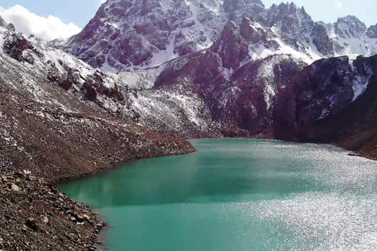 天梯山山峰巍峨,陡峭峻拔,高入云霄,山有石阶,拾级而上,道路崎岖,形如悬梯,故称天梯山,山巅常年积雪,有凉州八景之“天梯积雪”的自然景观。同时从高空中俯拍前方的黄羊河水库,美轮美奂。太阳映照着湖中心水草呈现两种不同的宝石色;岸边的黄土在湖面水光折射下呈现梦幻的粉红。