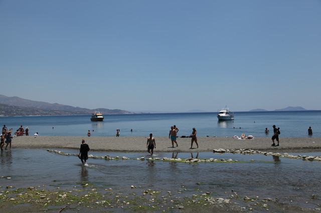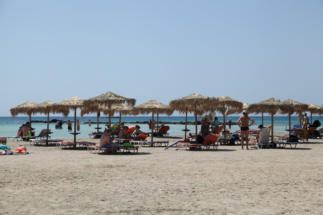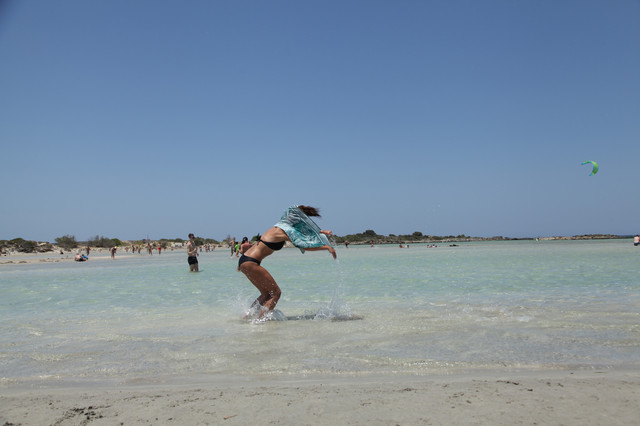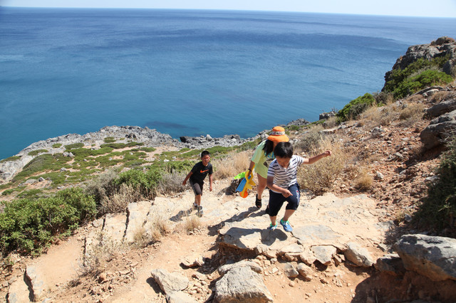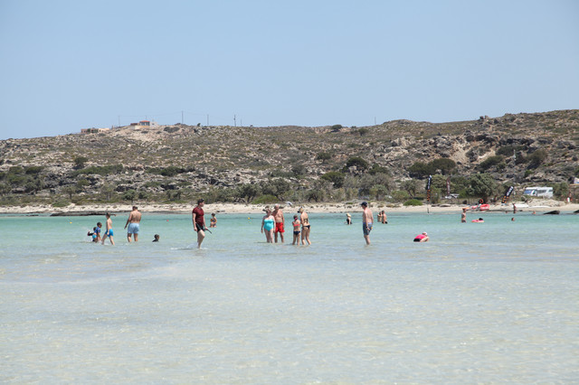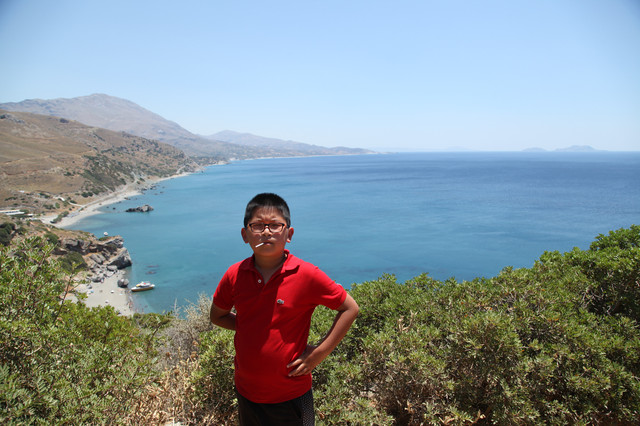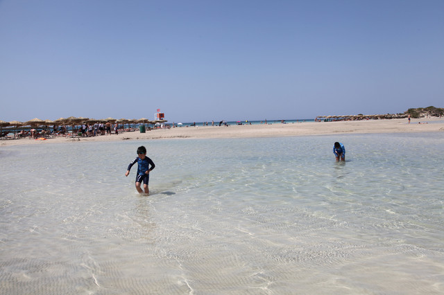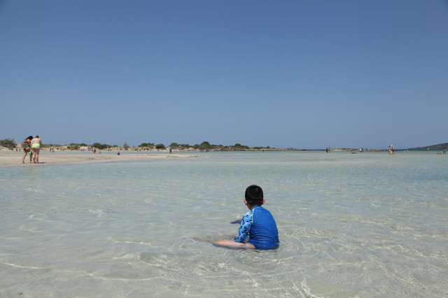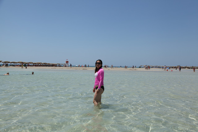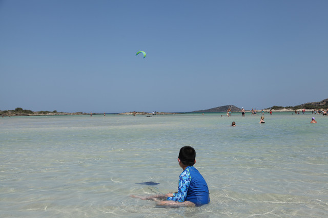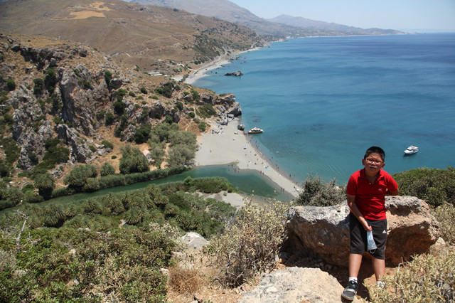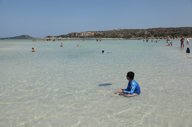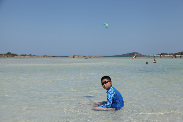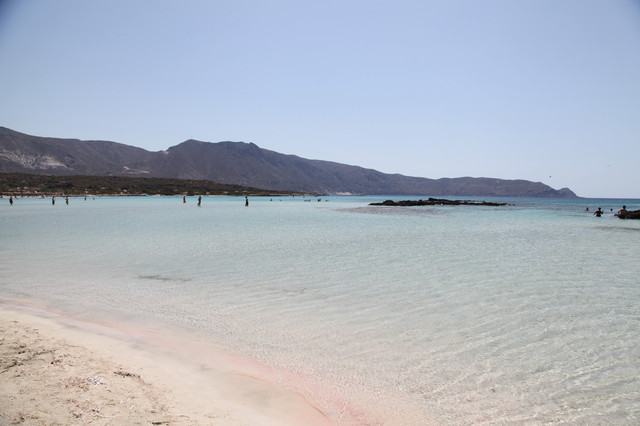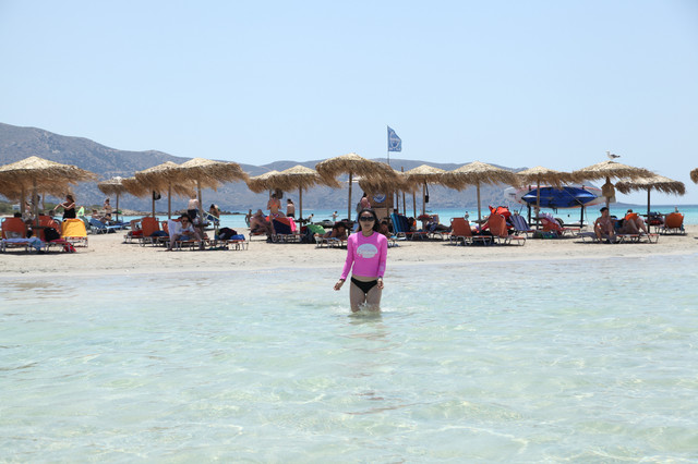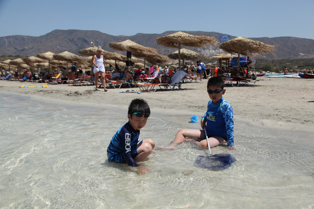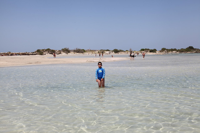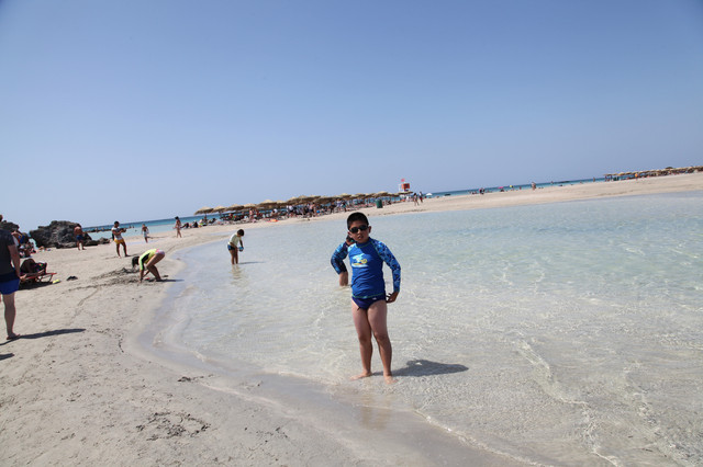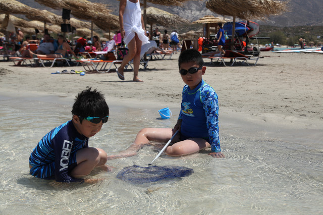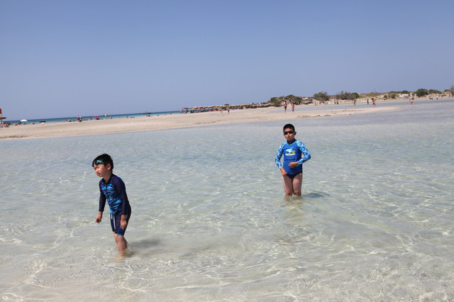 今天一大早,两个小朋友吵着要去游泳。我们驱车直奔克里特岛最西北端的粉红色沙滩而来。这也是世界非常著名的粉红色沙滩胜地之一。沙滩的沙子,因为一种沙虫死后颜色的改变而泛粉色而得名,这是非常有特色的旅游景点。