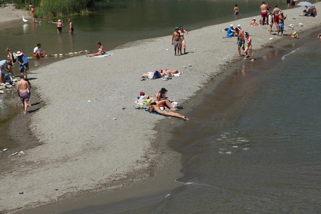 Keith和W小朋友早早就拿着挖沙工具,泡在浅滩上,开始忙碌的挖沙和修坝作业。我们则四处闲逛,租个大阳伞,看看那些进行日光浴的西洋风景。