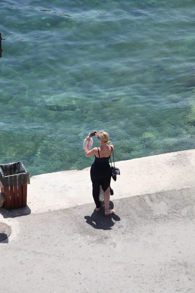 后来,我和娘子游到深水区去看潜泳的鱼群。不一会,一对上了年纪的老夫妇,对着我迎面走了过来,女方居然是无上装的,可能是想做日光浴吧。搞得我赶紧低下了头,老太太面带微笑,音容如常,看不出丝毫的不适宜。看来还是那句话说得透彻:“只要自己不尴尬,尴尬的就是别人。”