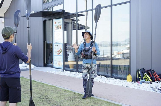 早上起床,艳阳高照,决定去尝试一下以前从来没有尝试过的海上皮划艇项目。天草的海面平静,而且这里的皮划艇用的是双座皮划艇,稳定性比较好,即使是初学者也可以轻松掌握。如果时间充裕,还可以划艇登陆贝壳岛与无人岛。