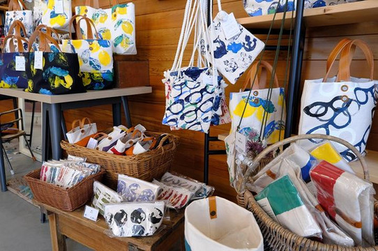 商店里还有熊本青年创作者的作品,耳环、胸针、手提袋等都非常有个性,而且是在别处买不到的。