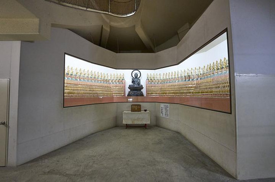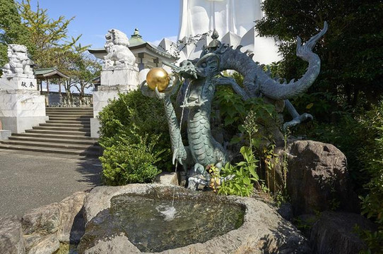 寺院中最引人注目的就是高达62米的救世慈母大观音像,这尊大观音像由钢筋混凝土制成,眉间的白毫是在30厘米的金板上镶嵌了18颗3克拉钻石制成,胸前装饰的璎珞则使用了56颗水晶和翡翠56颗,据说总造价高达20亿日元。观音像手臂中环抱着的幼儿也达到了13米。2021年7月在观音像粉刷工程完成后,一如往日的美丽耀眼观音形象得到了重生。