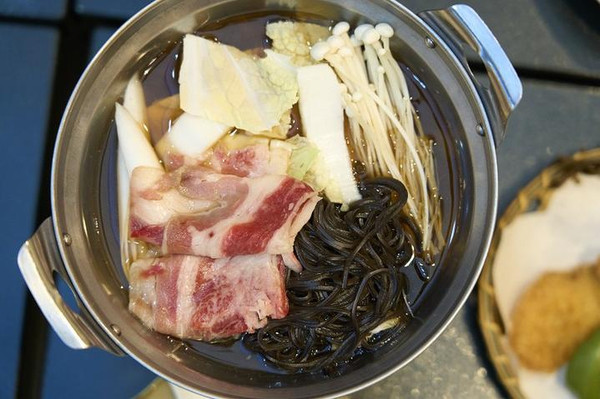 煮物是牛肉锅,肥牛片搭配金针菇、海带、白菜,汤汁非常鲜美。