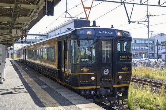 从「JR熊本站」乘坐JR九州特色观光列车「坐A列车去吧」到「JR三角站」。注意:这趟特色观光列车只在周末和节日运行。