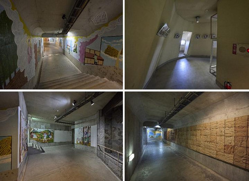 观音像内部经过地下道可以通往光明阁洞窟,两边墙上都是与佛教有关的壁画故事和木雕。