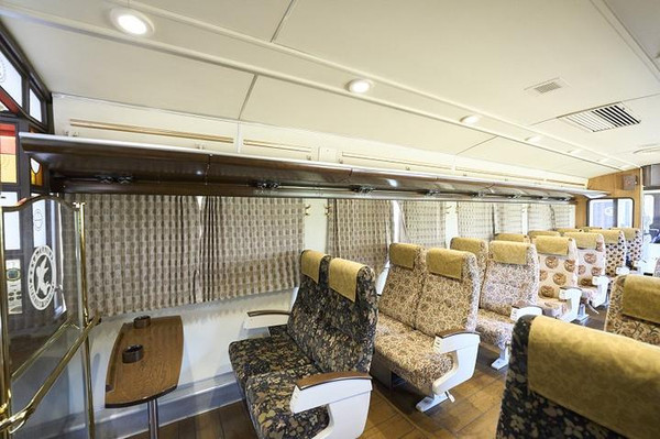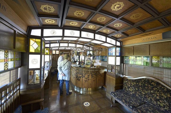 列车内部使用了色调稳重大方的木材和彩绘玻璃作为装饰,座椅也大多采用棕色系和靛蓝色,很复古。