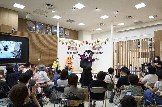 办公室外面是熊本熊演讲的区域,还一直循环播放熊本熊的片段。如果当天要是在办公室的话,就会举行活动开设歌舞表演等待大家前来参加。