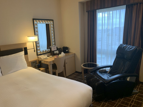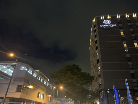 位于那霸市中心,交通非常方便,那霸就一条单轨电车,一头是那霸空港,一头是首里城,希尔顿逸林在距离那霸空港6站的旭桥站,与电车站的直线距离只有10米。真真是下了电车站就是酒店。对面就是冲绳图书馆,步行到国际通大概十五分钟。各种一日游半日游都可以接送,附近吃饭的和超市便利店也多。