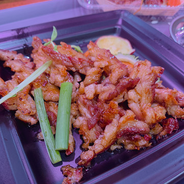 肉肉部位划分清晰,烹制用的是最原始同时也是最考验肉质的做法,现场挑选喜欢的?肉块递给服务员,坐等几分钟到十几分钟,滋滋作响的肉肉就上桌了。现烤现吃,美拉德效应的完美体现