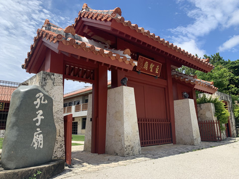 在那霸溜达闲逛的时候远远看到红色的漂亮屋顶,走过来发现是孔子庙。门开着,但是没看见人,不知道能不能进,就在门口张望了一会儿,庭院修剪的很整齐,大殿里有孔子造像,一看就是维护的很好的。