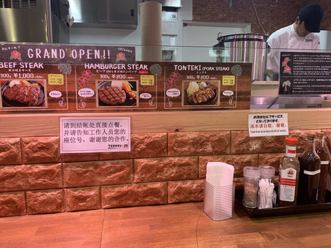 3层4层都有餐厅,我们吃的4层的吉野家合作款面条,只能现金支付。